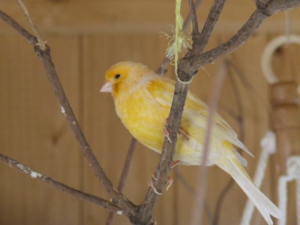 Wir hatten damals nur zwei Kanarien im Käfig und hätten niemals gedacht, daß die Lust haben sich in einem Käfig zu vermehren. Als meine Frau aber immer wieder Eier im Käfig fand beschlossen wir den beiden ein Nest zu spendieren. Ein bischen Scharpie darein und schon fing Bubi an zu brüten. Nach einigen Mißerfolgen kam endlich der Kleine zum Vorschein. Er ist übrigens gerade (2006) selber Vater geworden.