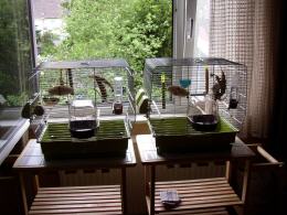 Unsere Kanarien entschlossen sich nun Nachwuchs zu machen und wir beschlossen größere Käfige zu kaufen.