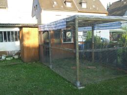 Was tut man nicht alles für die Kleinen! Im Frühjahr 2009 haben wir nun wieder mal die Voliere vergrößert. Das "Freigelände" ist nun insgesamt 7 Meter lang. Da haben unsere Kleinen nun aber wirklich genug Platz!
